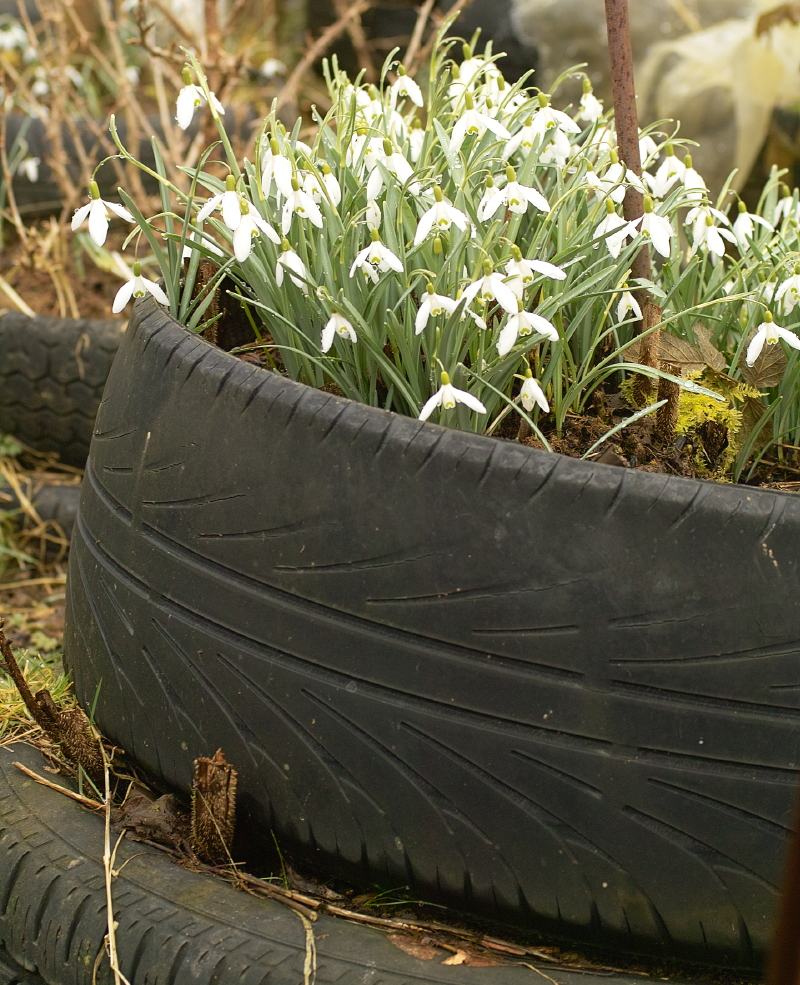Quite a climb for the snowdrops to get from the middle of the lower tyre to where they are now. So how do they do it? 24/02/12