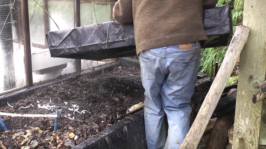 20121202_111647 (2) Published 04/12/2012 at 850 × 478 in Patterns and Perceptions; Autumn Leaf Mould Energy Potential (Part 3 – Heating a Greenhouse with an External Compost Bed:- Design Tweaks, Internal Set Up and Initial Temperature Findings); Growth Limiting Factors.