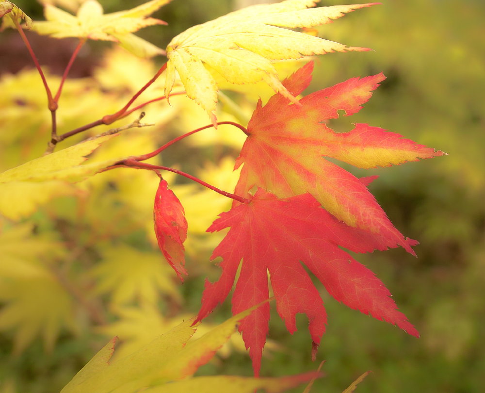 Many other plants currently just have single leaves going through a range of autumnal colour and pattern changes whilst their neighbours carry on regardless with their chlorophyll induced greenery. More firsts amongst equals?