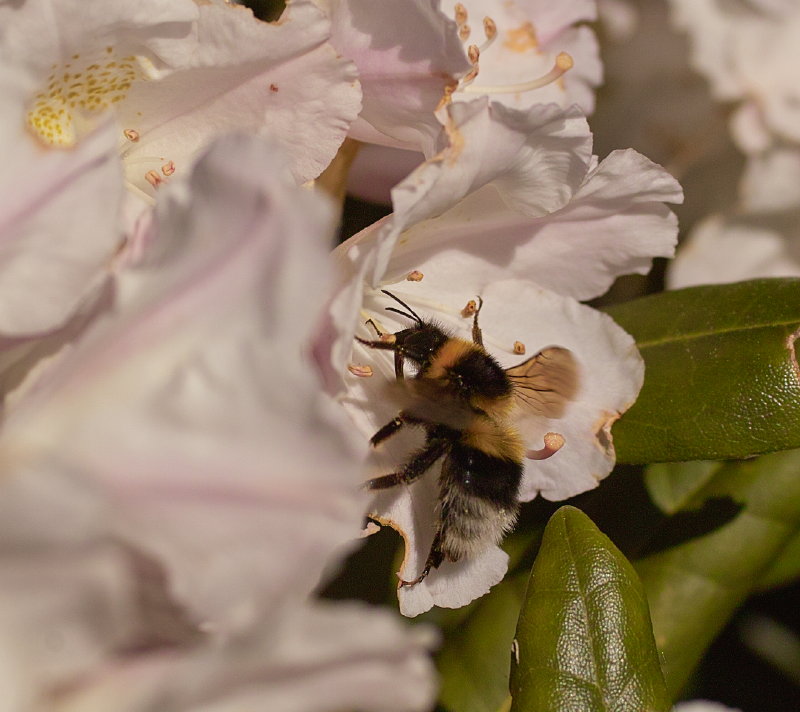 Most Rhododendron varieties seem valued by bumblebee species, from March through to June, though are less often visited by honeybees, which is perhaps just as well since honey made from too many Rhododendron flower visits, is potentially toxic to people.